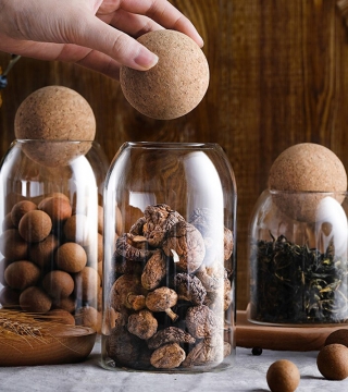 Стильна скляна банка з бамбуковою кришкою "Куля", об'ємом 700 мл. Вона чудово підходить для зберігання "сипучих" продуктів:чай, кава, спеції, бобові та зернові культури.