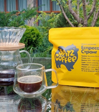 Арабіка Бразилія, робуста В'єтнам, лагідне обсмаження, для приготування в турці, гейзерній кавоварці, в ріжковій та крапельній кавоварках, в чашці. Міцна, з гірчинкою, нотки темного шоколаду, карамелі