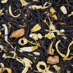 Чорний чай з шматочками персика, папайї, пелюстками апельсина і...