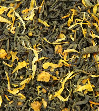 Зелений ароматизований чай "Абрикосовий сад" з шматочками абрикоса та пелюстками календули. Має злегка терпкий смак і приємний аромат абрикоса.