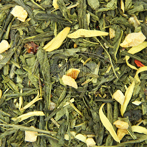 Зелений чай із цедрою та пелюстками апельсина, шматочками папайї, цедрою шипшини, гібікусом та звіробоєм. Має вишуканий аромат стиглого іспанського апельсина.