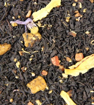 Чорний чай з шматочками папайї, манго, маракуї пелюстками півонії, мальви і ялівцю. Має аромат маракуї і солодкого манго.