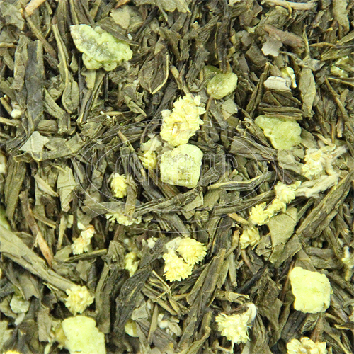 Зелений чай зі шматочками памело, листям ожини, квітами ціну, та вишуканим ароматом стиглого памело.