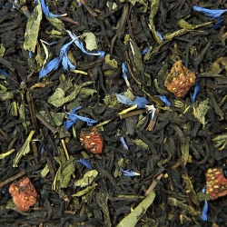 Суміш чорного і зеленого чаю з шматочками полуниці, пелюстками...